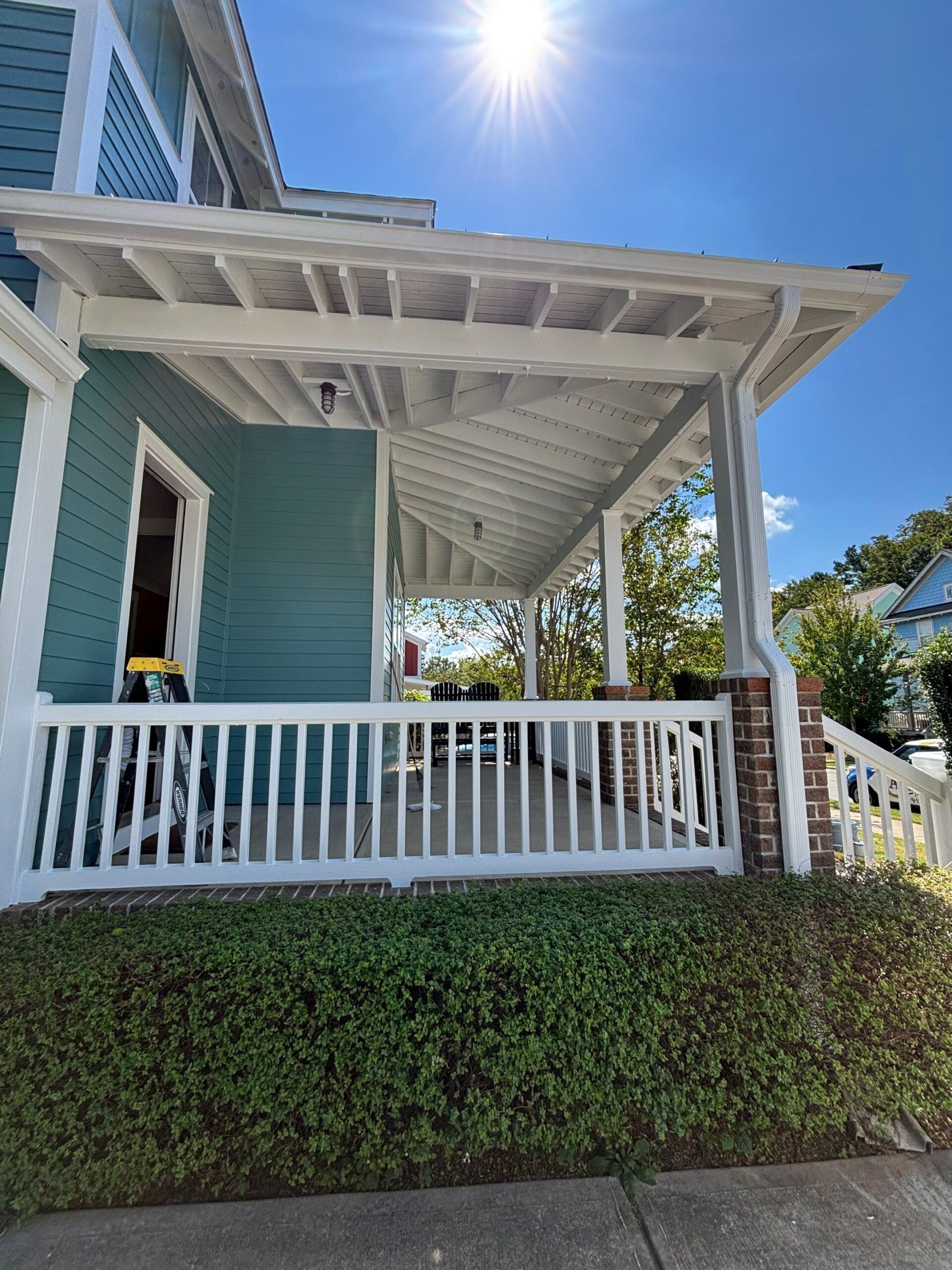 For durability and long-term protection, we used Sherwin-Williams Duration exterior paint across the property. The full exterior home repaint took 7 to 8 days to complete. The total exterior painting project cost ranged from $11,500 to $13,500, depending on preparation work and porch updates.