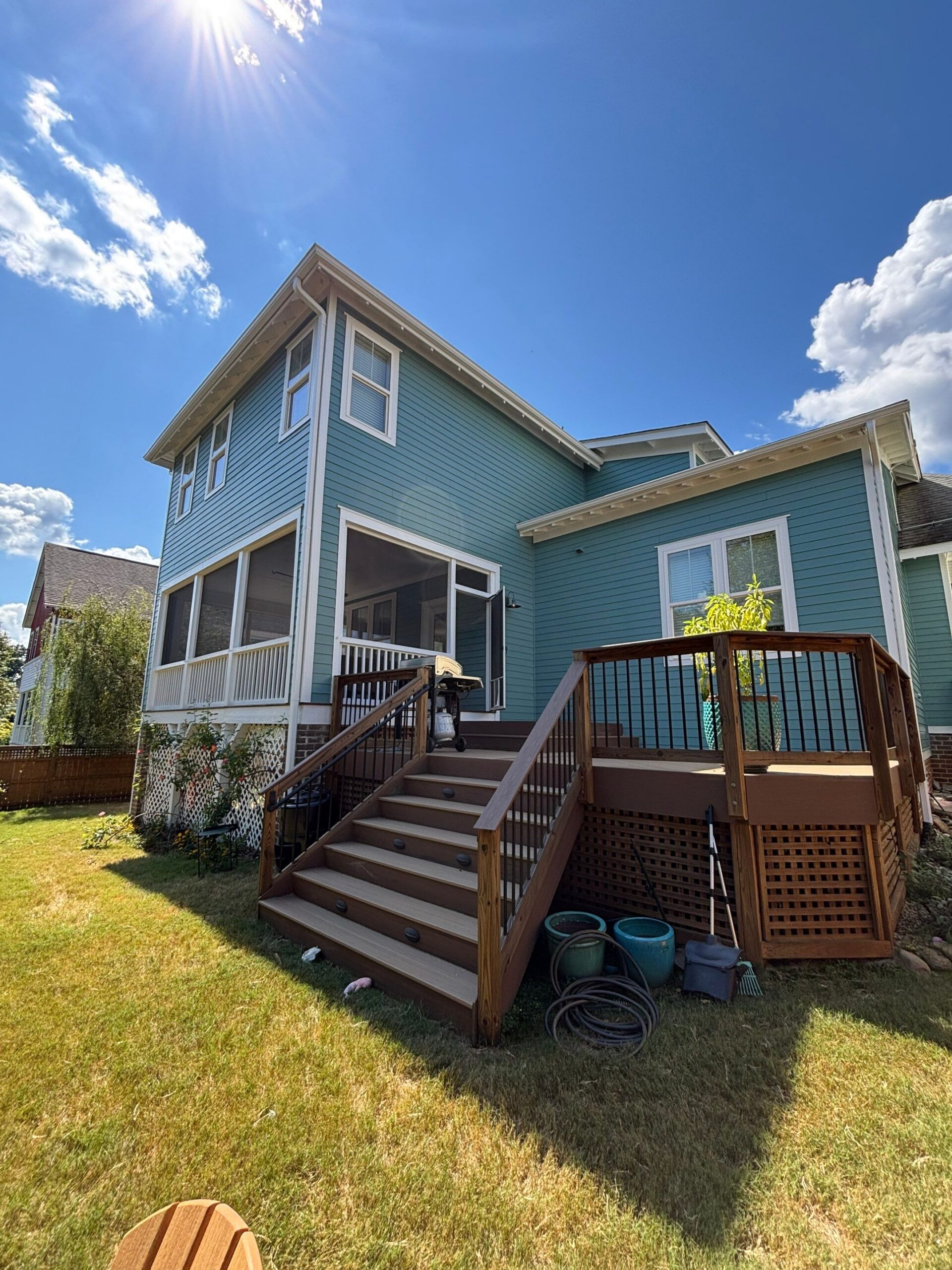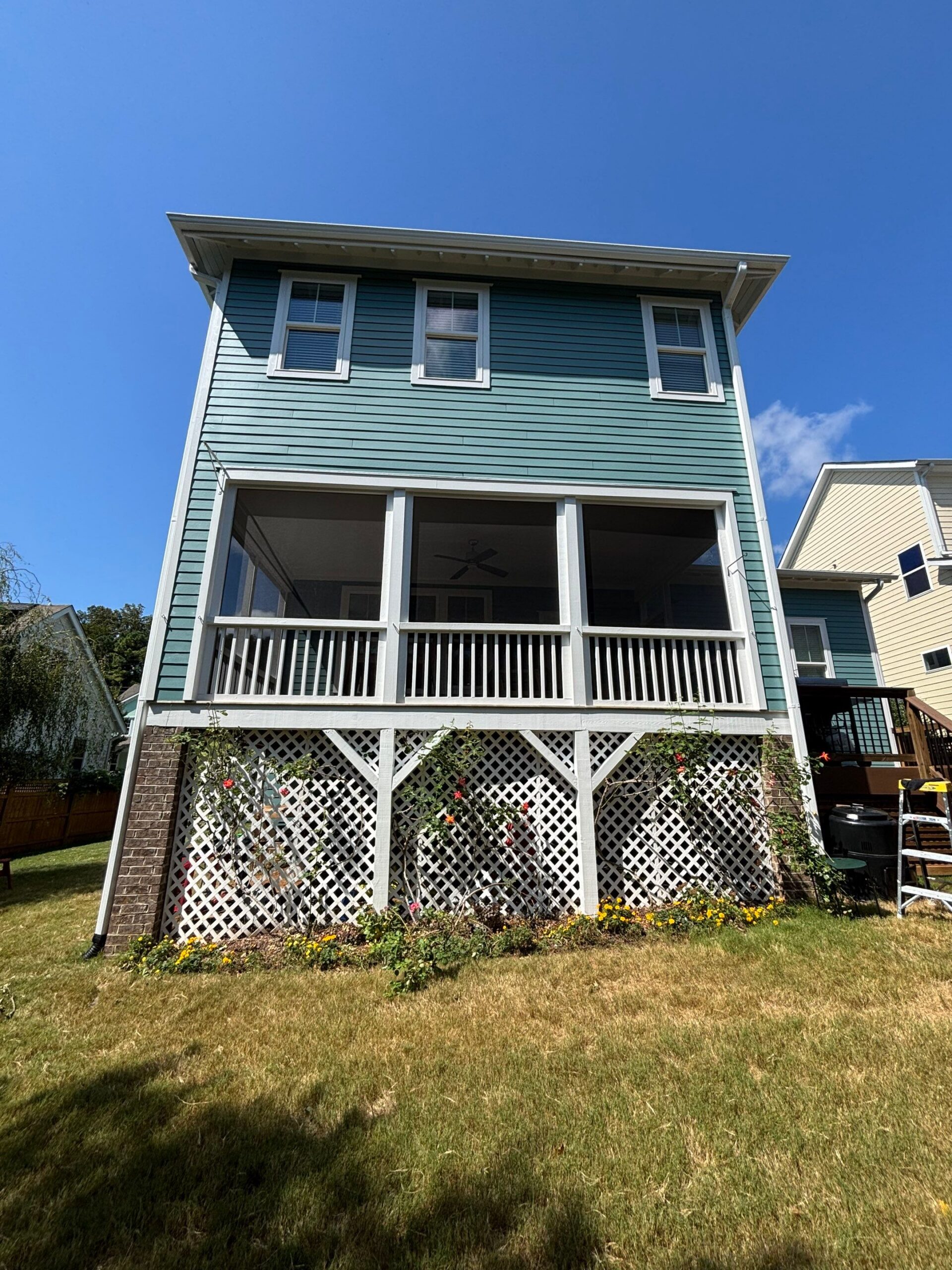 During the initial walk-through, we talked through the areas that would benefit most from new paint. The exterior had started to show normal wear over time, especially around the porches and trim. Since the screened porch is a space the homeowner enjoys regularly, replacing the worn screening while repainting the structure made sense. With a clear plan in place, the project moved forward smoothly and stayed on schedule.