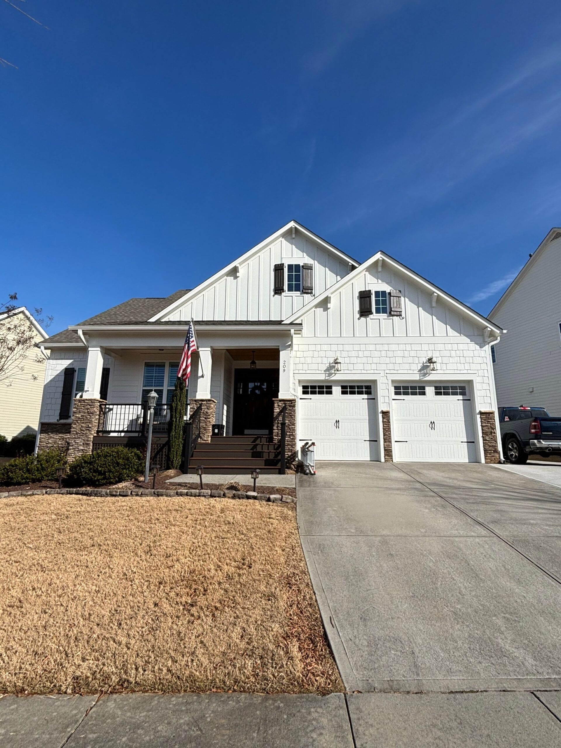 Alvarez Painting completed a full exterior home repaint for a 3,032 sq ft residence in Holly Springs, NC. The project took 6 days and covered all exterior surfaces, including siding, trim, shutters, and doors. We also handled minor carpentry repairs where needed, along with staining and sealing exterior ceilings.