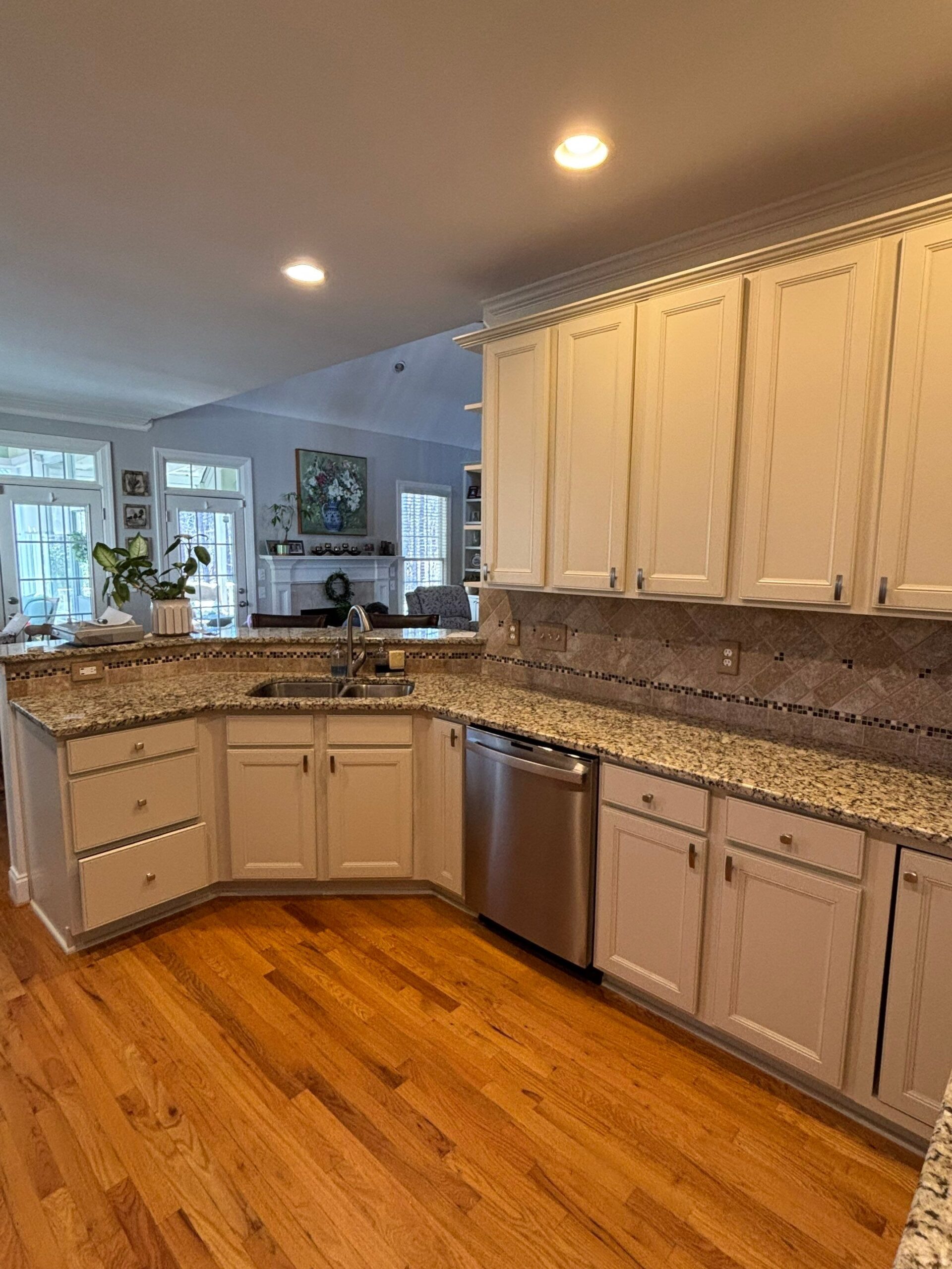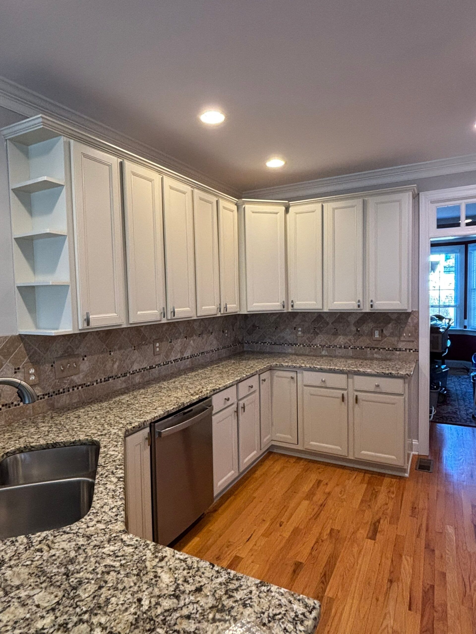 Alvarez Painting recently helped a homeowner in Fuquay Varina revamp their kitchen with a high-quality kitchen cabinet painting service. Over five days, we thoroughly degreased, primed, and painted the cabinets. The result? A beautifully refreshed space with a clean, modern feel, all at a cost between $5,000-$6,000.