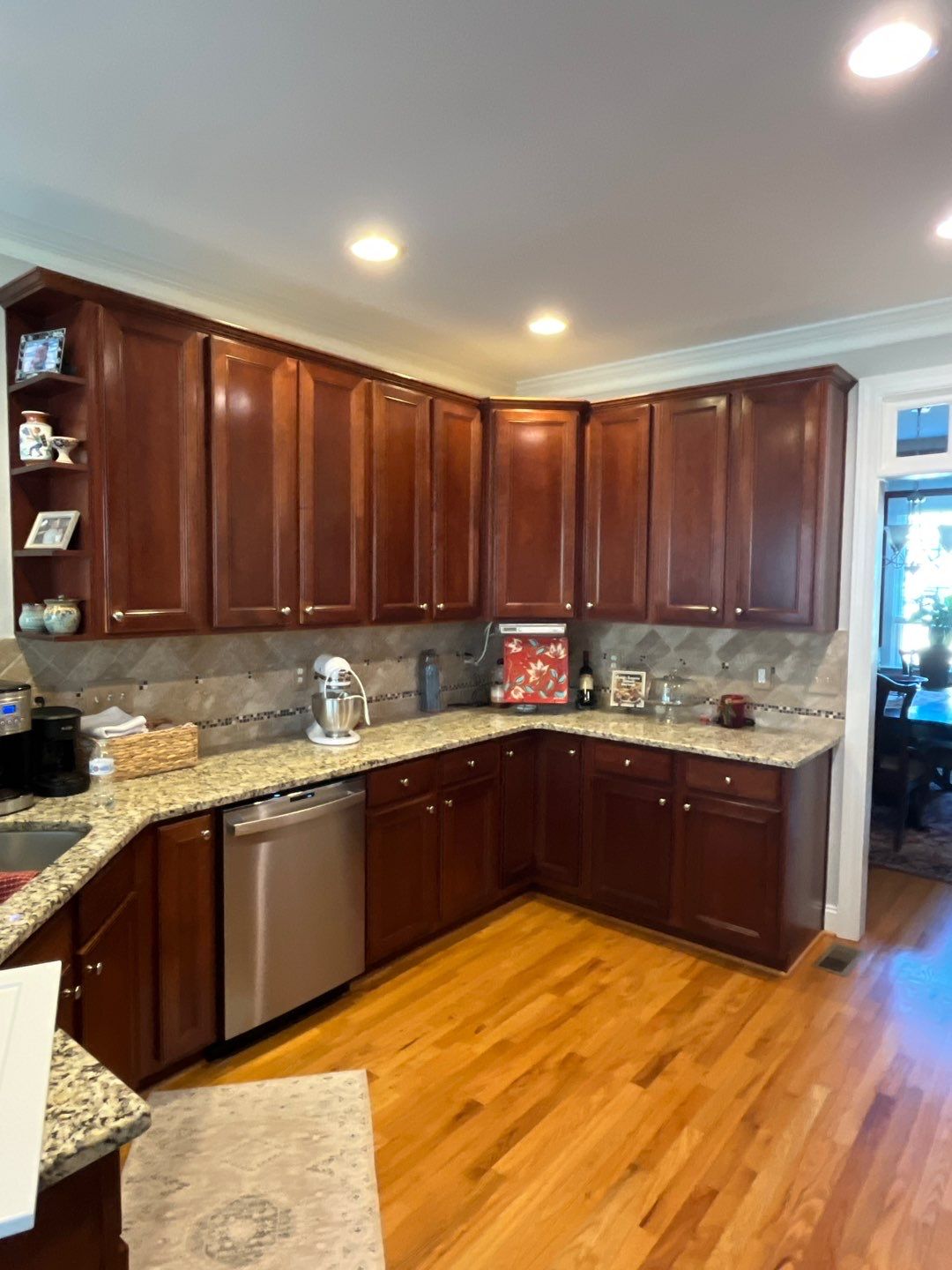 Mary R loved her kitchen layout but felt the cabinets looked outdated and worn. She was eager to update them but felt overwhelmed by color choices. Our kitchen cabinet painting service stood out because we offered a color consultation—a key factor in her decision to hire us.